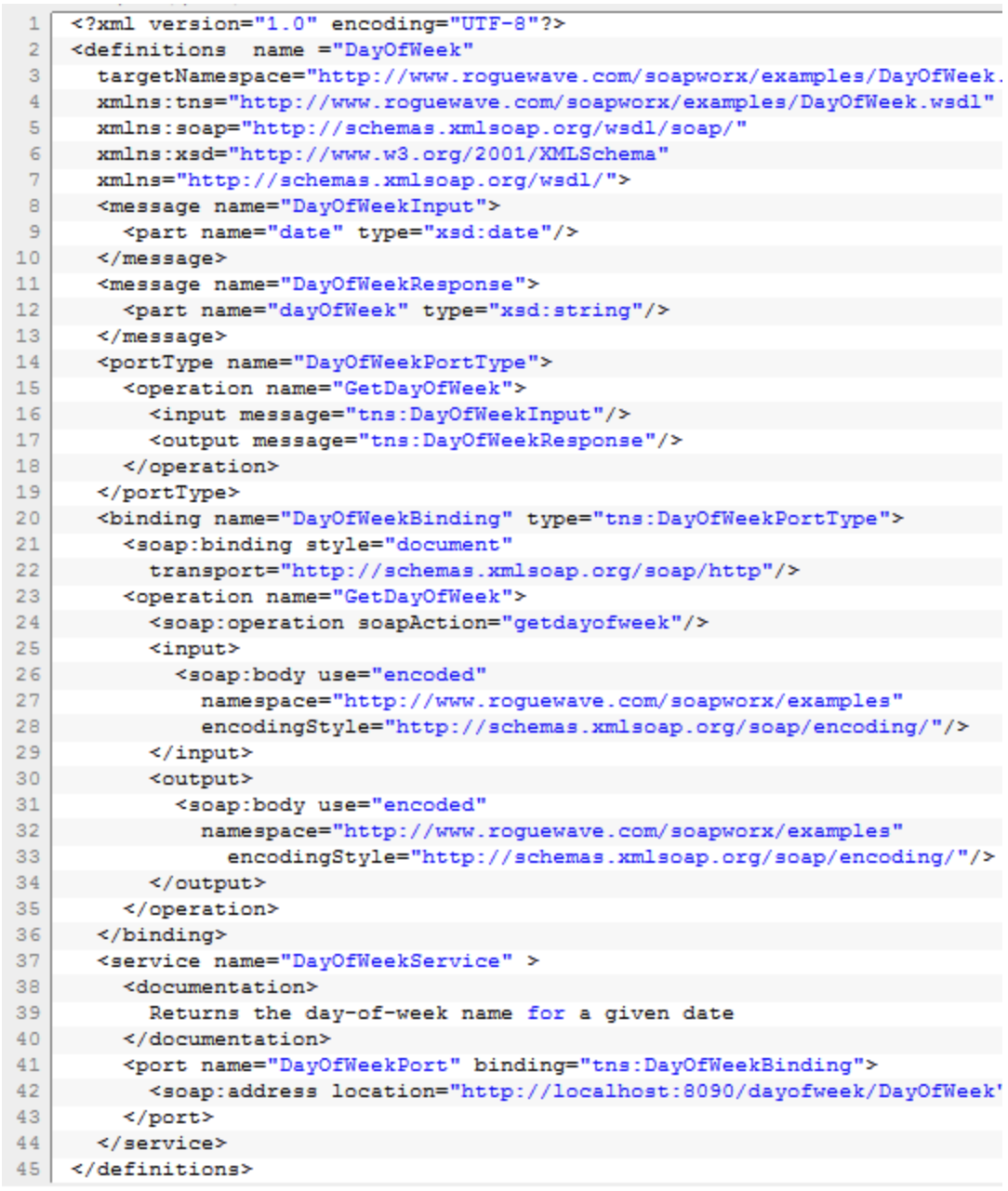 How do you know what methods are available in a Web service that you stumble across on the Internet? Well, WSDL takes care of that for you. WSDL is a document that describes a Web service and also tells you how to access and use its methods. Take a look at a sample WSDL file: